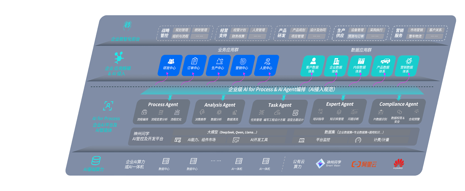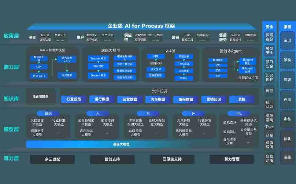 端到端的一站式AI工作空间深度融合了从企业战略规划到日常经营的全流程业务板块,,定向解决车企内部领域多、、部门多、、链条长、、、场景碎片化等难题,,,支持车企快速构建以AI为核心的生产力写作体系,,,实现任务执行与AI能力的无缝集成与交互